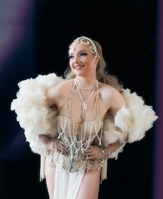 Kara Leva began her burlesque career at the Shimmy Shake School! She has since been seen on stages around Germany and has paved a way for herself with unique character driven routines.