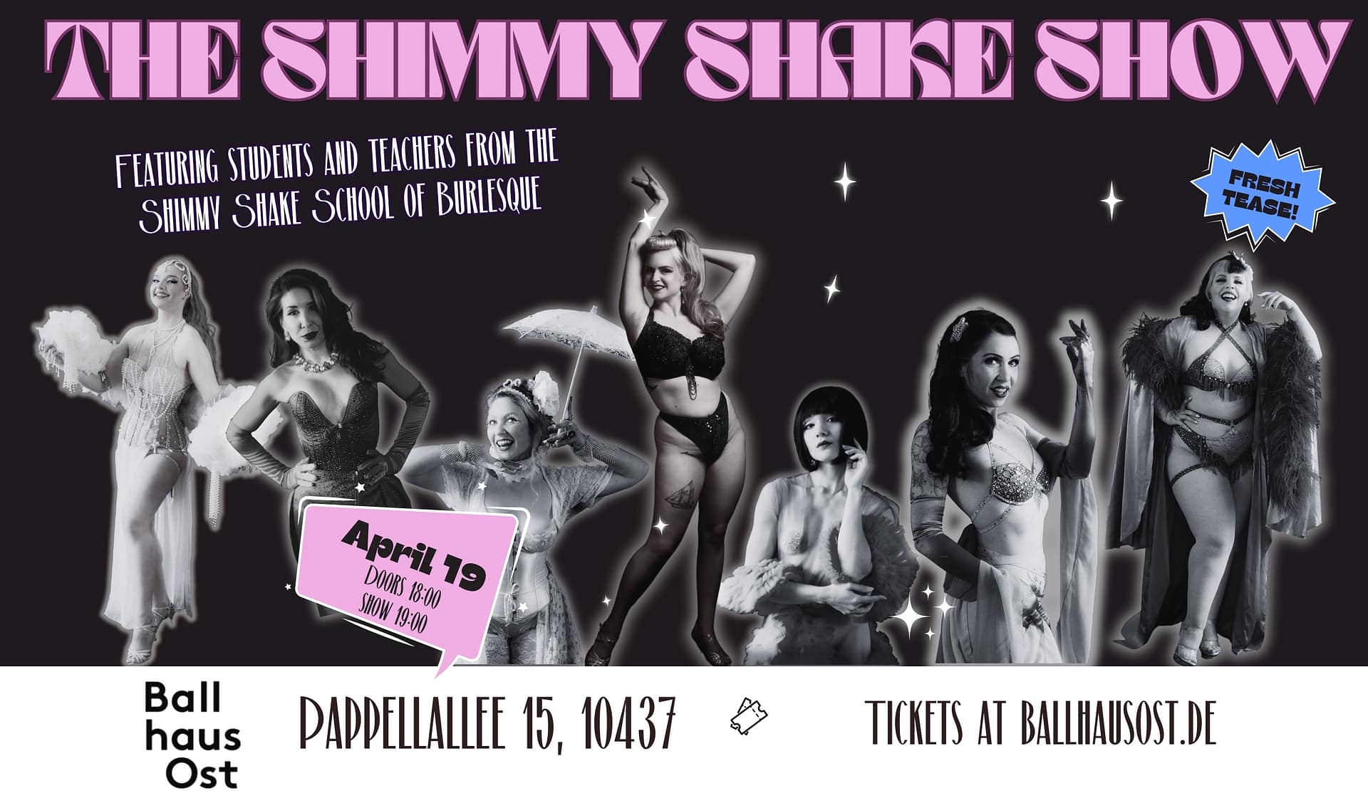 Die Shimmy Shake Show ist eine Produktion der Shimmy Shake School for Burlesque in Kooperation mit dem Ballhaus Ost.